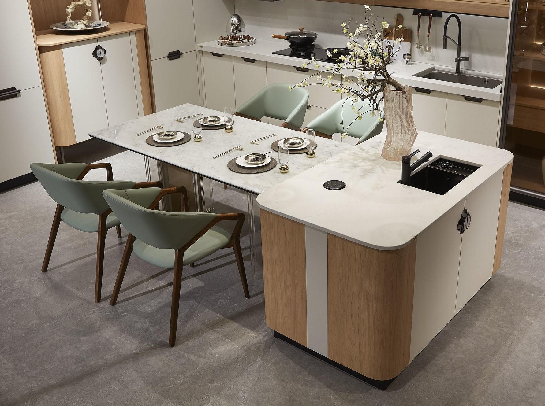 نقدم أجود أنواع الرخام والخشب والمواد الطبيعية الصديقة للبيئة. نقوم بتركيب جميع تجهيزات وإكسسوارات المطبخ، بحيث تستلم مطبخًا متكاملًا لحياة مريحة وسعيدة.